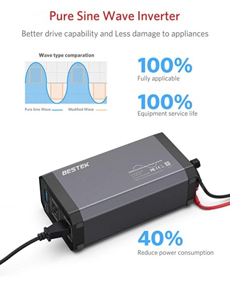 1 x Bestek 1000W Pure Sine Power Inverter