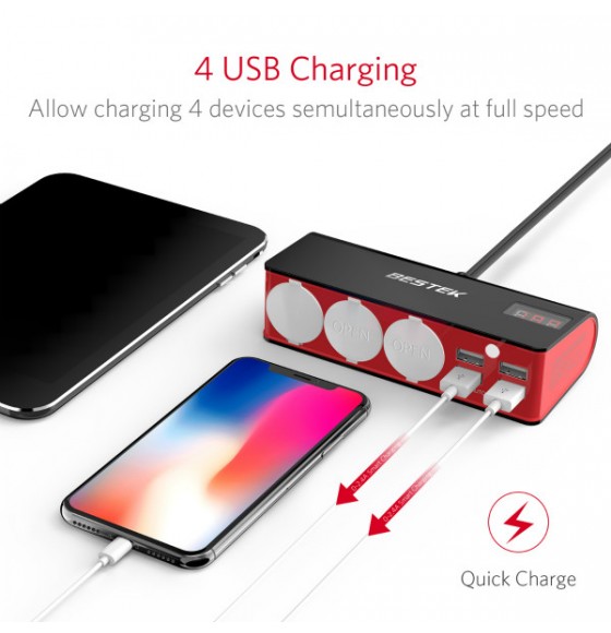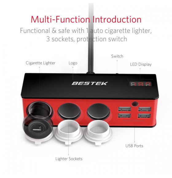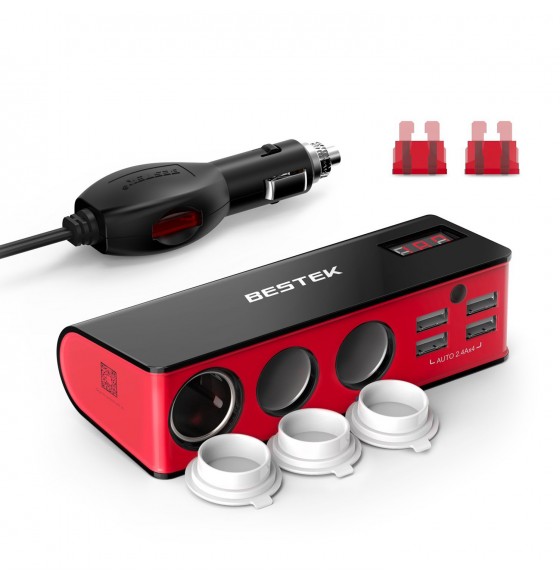 The upgraded cigarette lighter with 3 sockets and 4 USB ports provides a convenient way for car users to use portable appliances and charge your electronics while you drive, nice car travel companion.