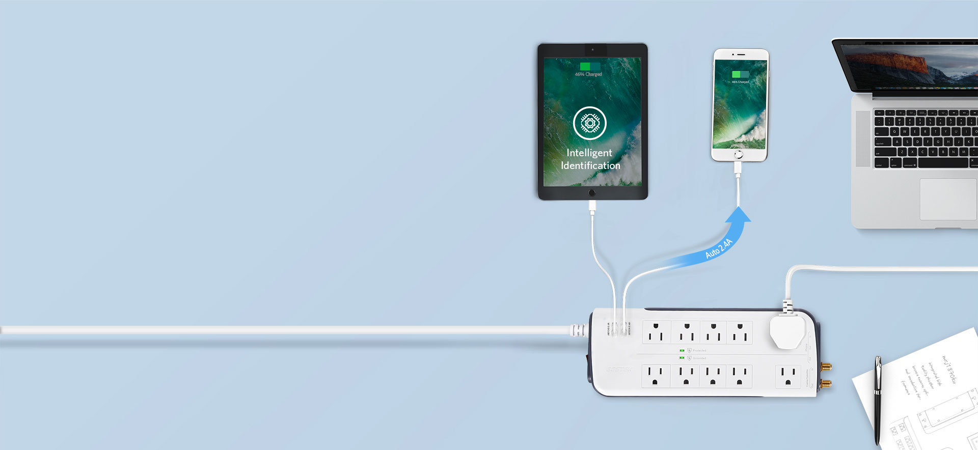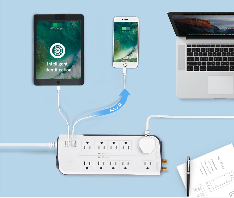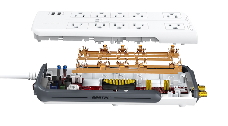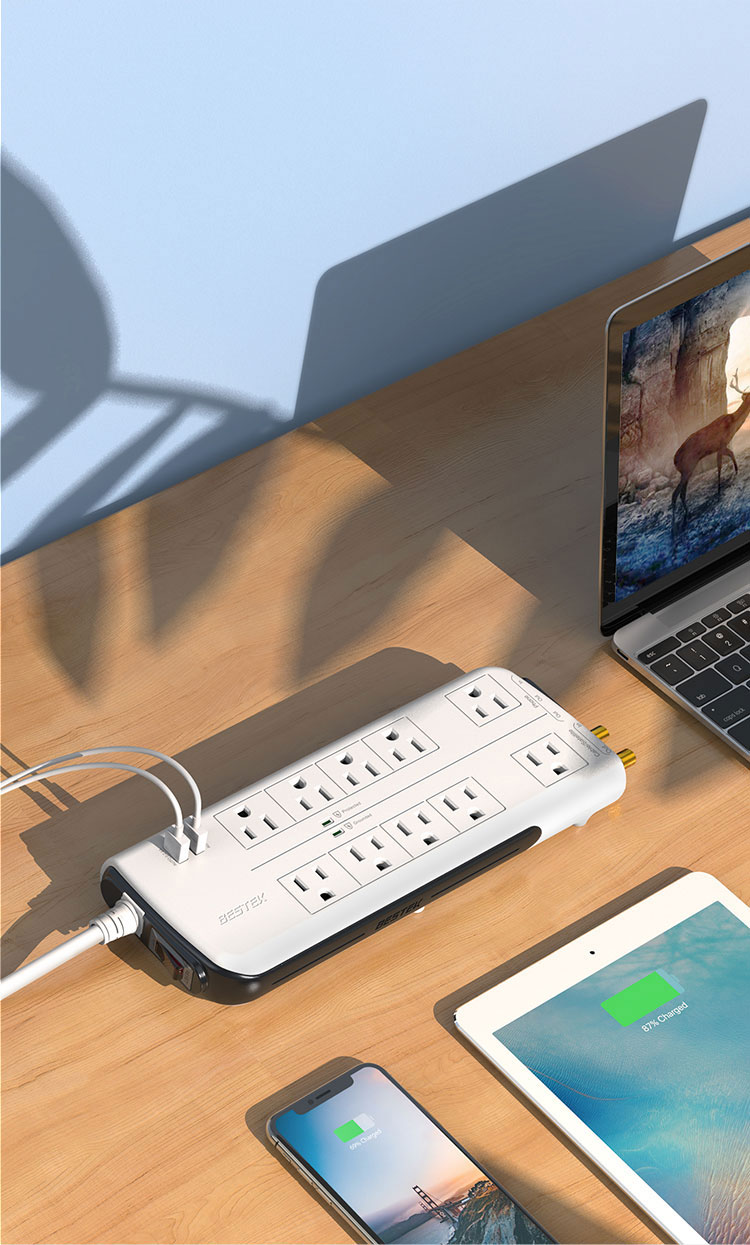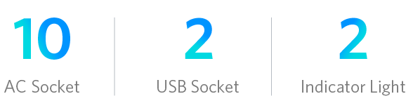 Equipped with 10 AC outlets plus 2 5V/2.4A USB