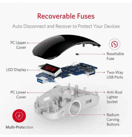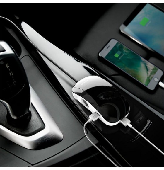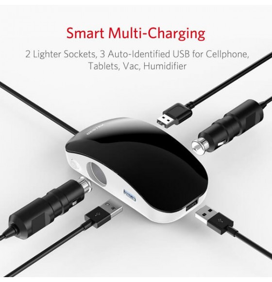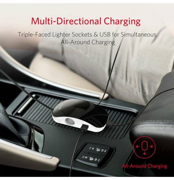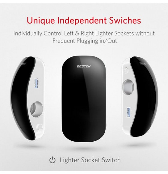 The 3 USB ports are distributed in three directions to allow driver, copilot and backseat passenger to charge devices at the same time. There are two independent switches that can individually control the left and right USB to help save more energy.