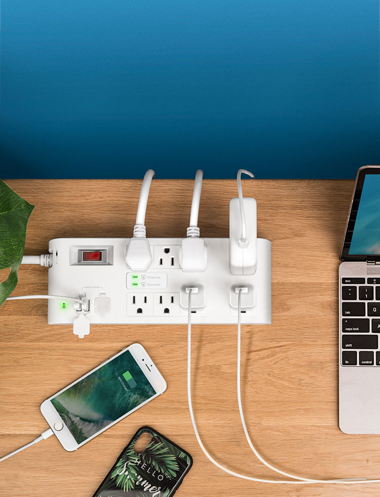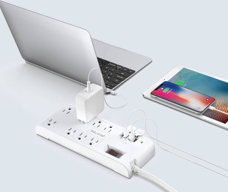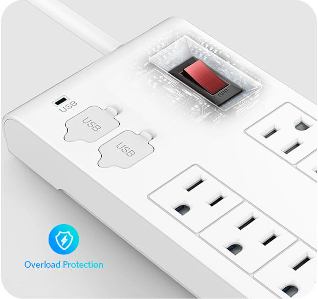Features 8 outlets and 4 USB ports with Smart IC technology