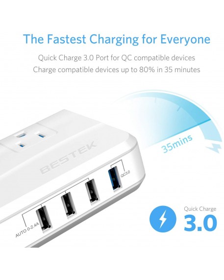 4 USB charging ports and 3 AC outlets, charge 7 electronics at the same time. 18W QC3.0 port with 3 auto 2.4Amps USB ports charging your USB powered device at high speed, 3 AC outlets support Max 200W power.