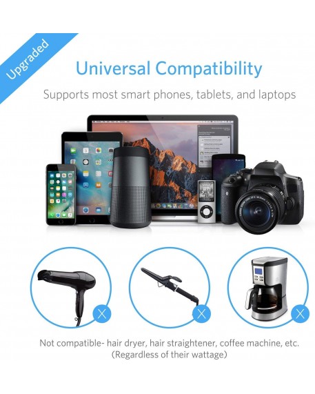NRTL safety tested, over-current, over-load, over-heat and short-circuit protection. USB outputs are completely isolated from the AC power to prevent all your devices from being damaged in an abnormal situation.