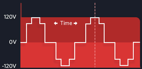 *The Pure sine wave rises and falls smoothly and can change its polarity instantly without a pause. Modified sine wave has a few peaks and also keeps at zero for a few milliseconds.