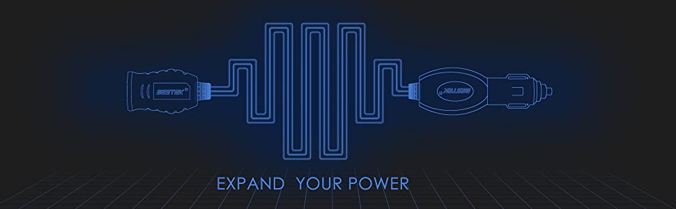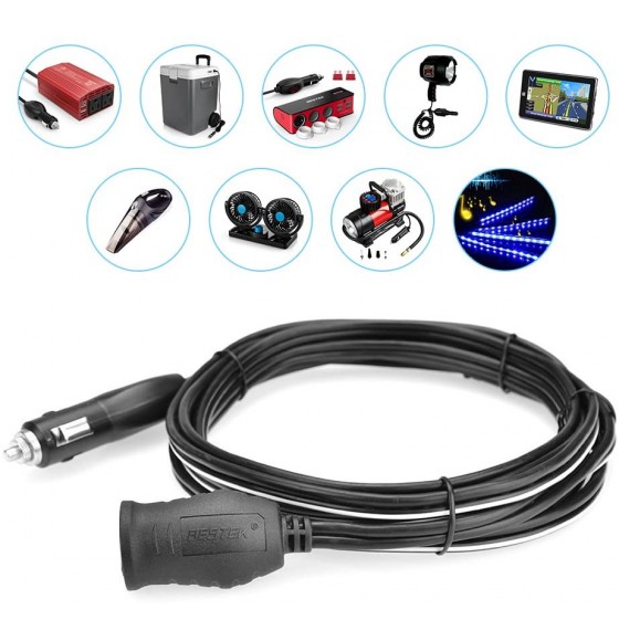 BESTEK 12.1ft Cigarette Lighter Extension Cord (Black)
