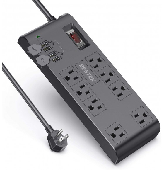 BESTEK Upgraded Surge Protector Provides premium power protection for both home and professional workstations. Designed to protect PCs,phones/fax/modems,printers,stereos and other electronics.